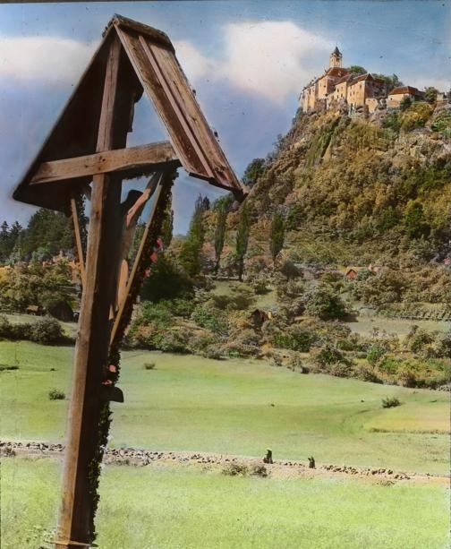 Marterl mit Blick auf die Burg