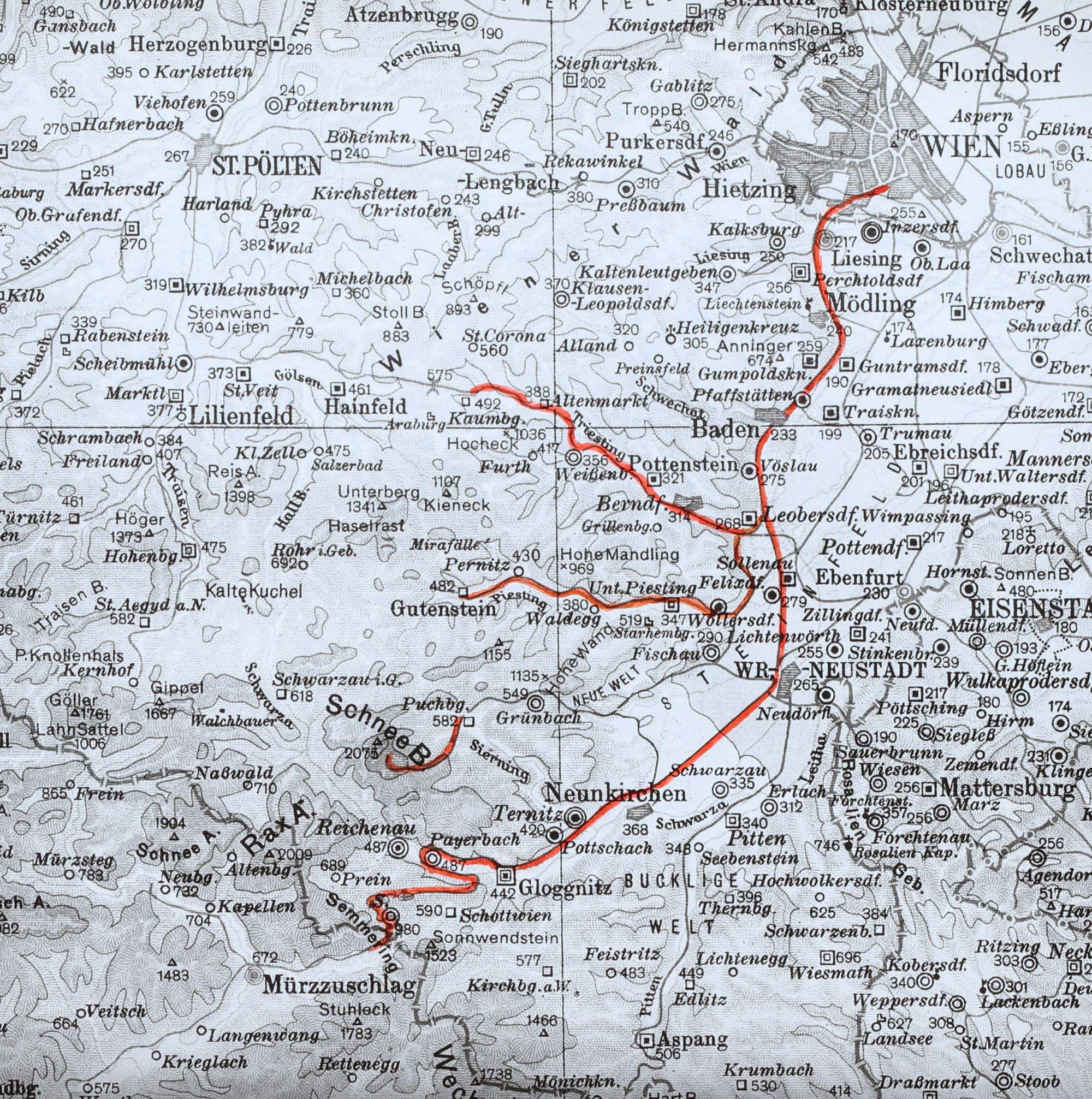 Karte der Südbahnstrecke